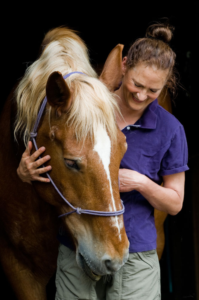 It was during my studies that I was asked to take over the care of a beautiful rescued Belgian mare Reason. When I met her she was a shut down, depressed and at times a very belligerent horse, but I sensed something very special in her. She has been my greatest teacher during this journey. Not only giving me invaluable feedback on my work, but teaching me about patience and inspiring me to explore training styles to find the best fit for working with her personality. She has grown into a delightfully silly, very intelligent, willing and patient partner.